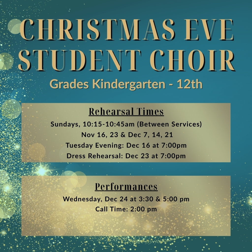 The Students of GC are ready to celebrate Christmas and will be performing during the Christmas Eve Candlelight Service! Register by November 12th to join the choir. Ages Kindergarten through 12th Grade. Make sure you can commit to the below dates, or contact Info@generationschurch.net if you have any conflicts. See below for additional details.