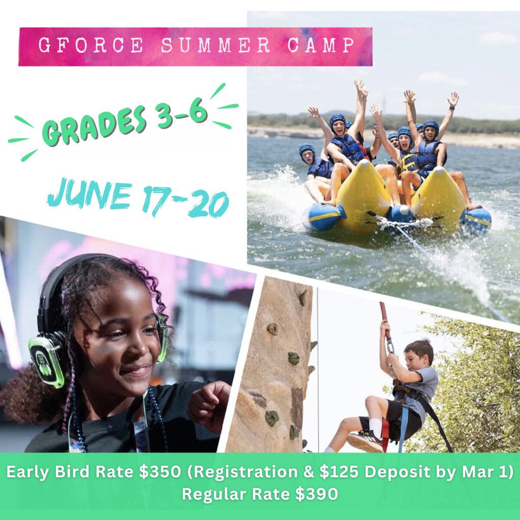 Info packets and registration details are available at the Welcome Center. For complete registration, we must have online registration and deposits turned in to reserve your space. For GChurch students going into 3-6 grades.