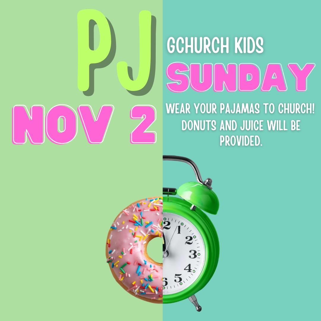Hey King’s Kids and G-Force! Let’s celebrate the end of Daylight Savings Time! Wear your pajamas to church (don’t forget shoes). Donuts and juice will be provided in the classrooms.
